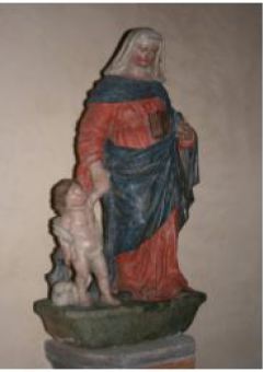 La plus ancienne, datant du 17ième  siècle est celle de saint Denis, second patron de la paroisse mais la représentation de ce saint céphalophore pourrait être aussi celle de saint Didier, Norges ayant fait partie du diocèse de Langres jusqu’au 18ième siècle. Le groupe représentant sainte Anne et la Vierge est constitué de trois morceaux et Marie porte des vêtements à la mode du 17ième siècle.