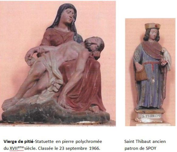 SPOY, Cypétum, Sipétum, Cepettum, Sepoïum, Villa de Speis, Cipoy, Sepoy et Spoix (Cippus, cep de vigne )ou (Cippus, cépée palissade ) fut donné avec son église aux religieux de l’abbaye de Bèze par Clotaire III.