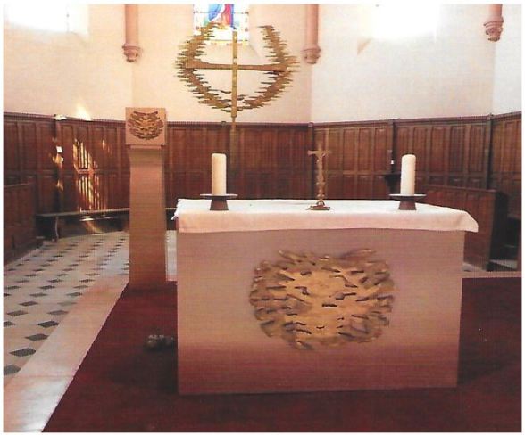 L’ensemble maître-autel contemporain du chœur de la fin du XXe siècle.